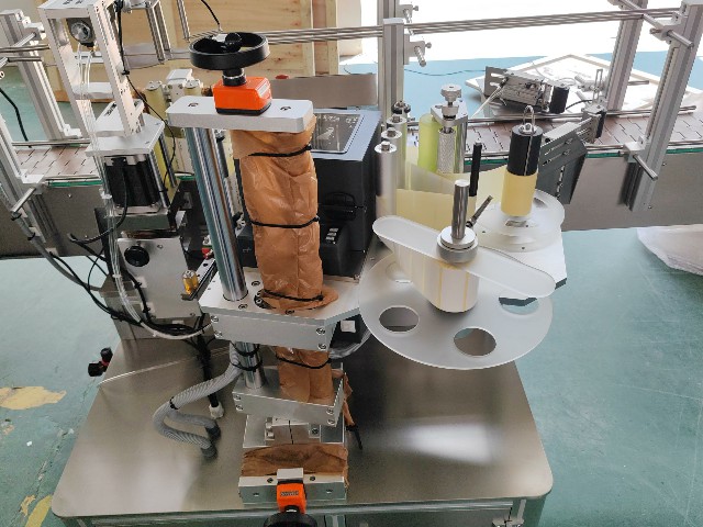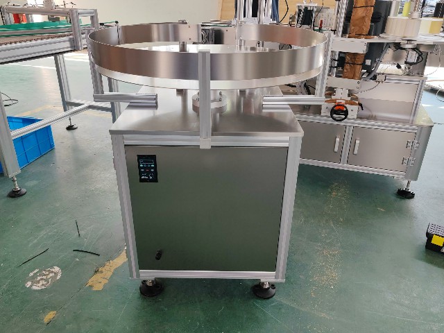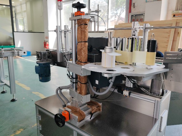 2025.9.12沙特圓瓶單標定點不干膠貼標機+轉盤1臺